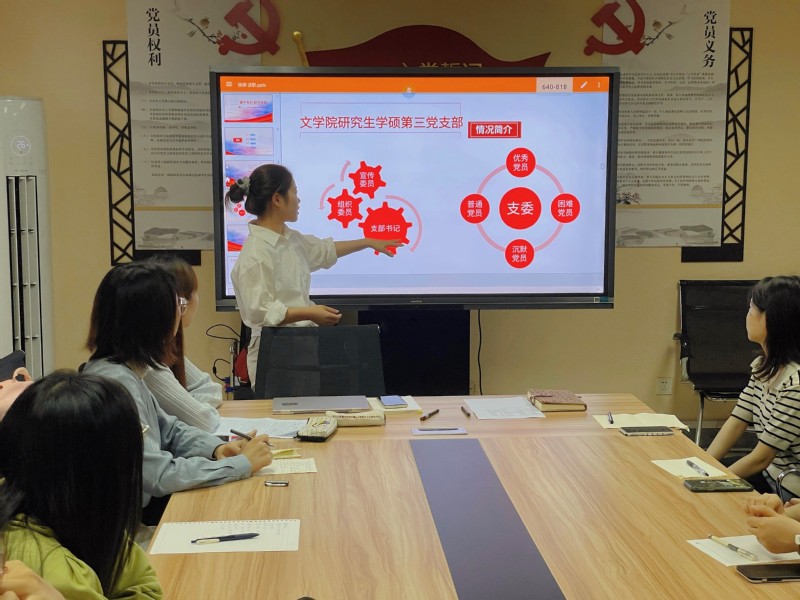 接下来,徐婷同志通过此前的支部工作回顾,向大家介绍了学硕第三党支部的基本情况、发展工作、主题活动、特色活动等。并由此指出,支委在接下来的工作中要严于律己、讲求高效。支部成员也要积极配合,更鼓励大家为支部发展建言献策,让党日活动的开展更具“意趣”和“意义”。希望整个支部形成公开、健康、良性的发展氛围,个人和集体共同进步、共享成长!