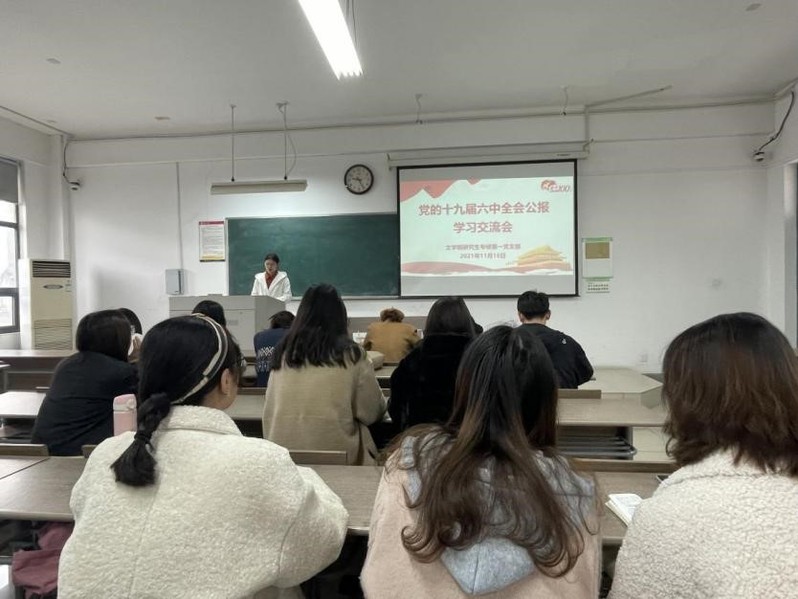 2021年11月16日,皇冠博彩官方 皇冠博彩官方 研究生专硕第一党支部于上午9时1003幢3403教室开展十九届六中全会精神的心得交流会。本次活动由党支部书记谢宇红同志主持,党支部全体党员到场参加。