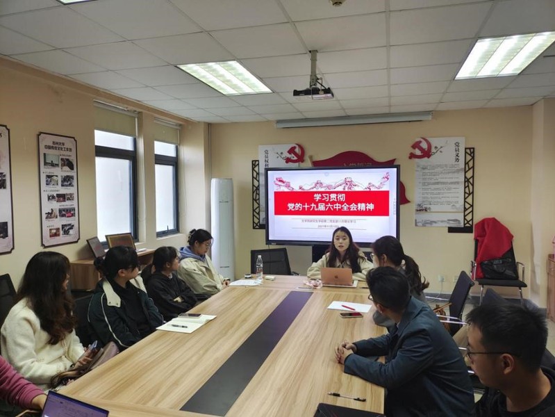 11月8日至11日,党的十九届六中全会在京召开,审议通过了《中共中央关于党的百年奋斗重大成就和历史经验的决议》。为了深入学习贯彻全会精神,坚定理想信念,2021年11月15日,皇冠博彩官方 研究生学硕第二党支部开展了一堂深入学习贯彻党的十九届六中全会精神的生动党课。本次党课由支部书记范佳玥同志领学。