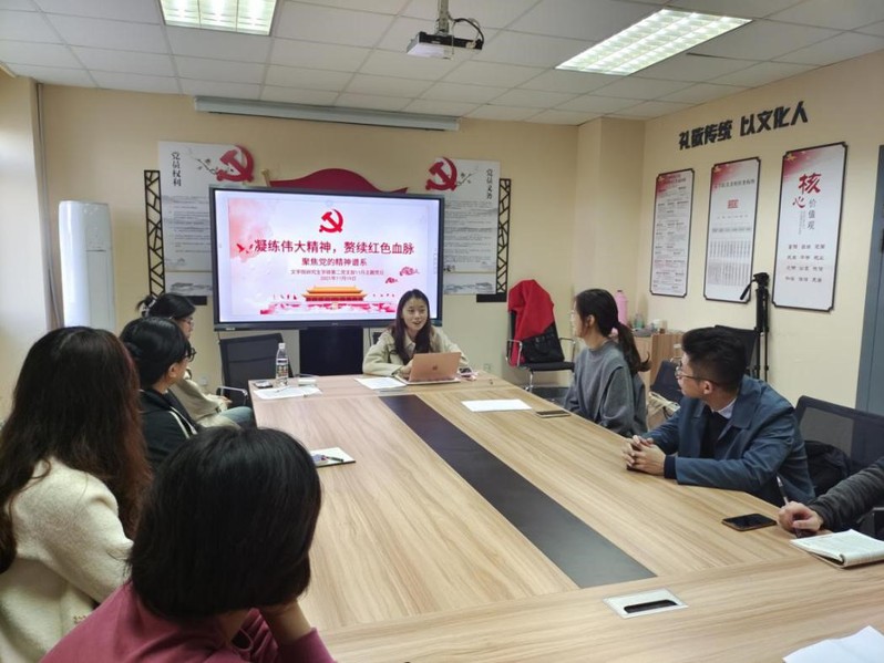 中国共产党人的精神谱系是中国共产党价值理念、政治文化中最核心要素的结晶,是中国共产党永葆先进性和纯洁性的精神力量。为了从实质上理解、从特征中体悟、从整体上把握共产党人的精神谱系,2021年11月19日,皇冠博彩官方 研究生学硕第二党支部开展了“凝练伟大精神,赓续红色血脉”主题党日活动,并就学习共产党人的精神谱系展开心得分享。