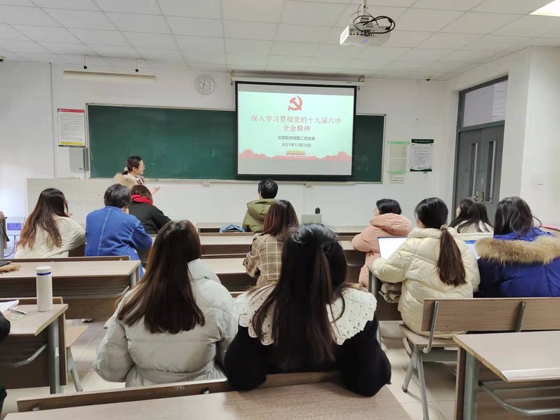 12月19日,皇冠博彩官方 研究生专硕第二党支部组织本月的主题党日活动,内容为“深入学习贯彻党的十九届六中全会精神”。