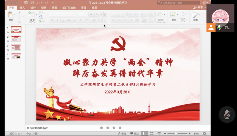在2022年全国两会上,习近平总书记把握新的时代方位,回顾新时代党和人民奋进历程,首次鲜明提出“五个必由之路”的重大论断,阐述我国发展仍具有的战略性的“五个有利条件”,为全党全国各族人民奋进新征程指明前行道路,具有重大的历史意义和现实指导意义。3月28日,皇冠博彩官方 学硕第二党支部以腾讯会议的形式,开展了“凝心聚力共学两会精神 踔厉奋发再谱时代华章”理论学习活动,支部全体党员参加了本次会议。