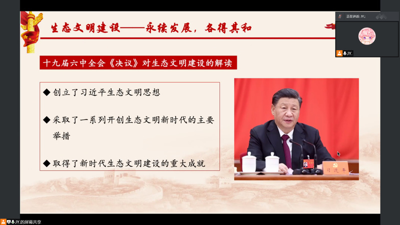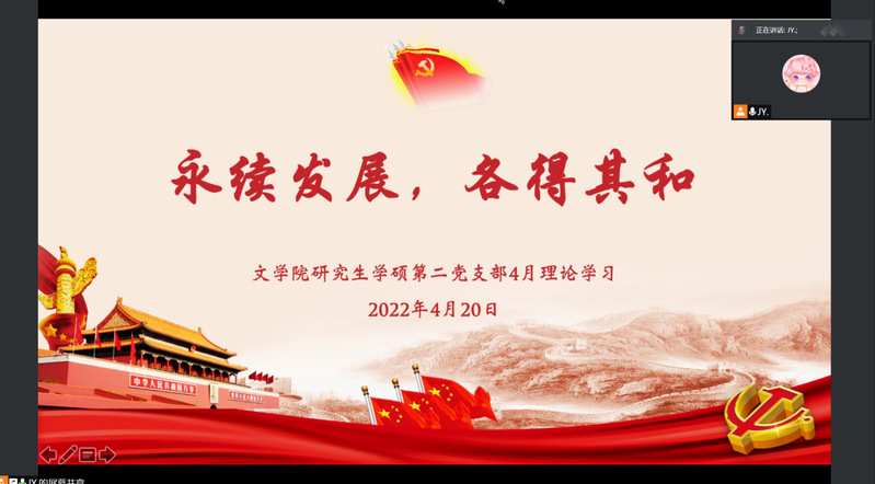 生态环境保护是功在当代、利在千秋的事业。生态环境是关系党的使命宗旨的重大政治问题,也是关系民生的重大社会问题。习近平总书记在参加首都义务植树活动时强调,要推动在全社会,特别是在青少年心中,播撒生态文明的种子,号召大家都做生态文明建设的实践者、推动者,让天更蓝、山更绿、水更清、生态环境更美好。4月20日,皇冠博彩官方 学硕第二党支部以腾讯会议的形式,开展了“永续发展,各得其和”理论学习活动,支部全体党员参加了本次会议。