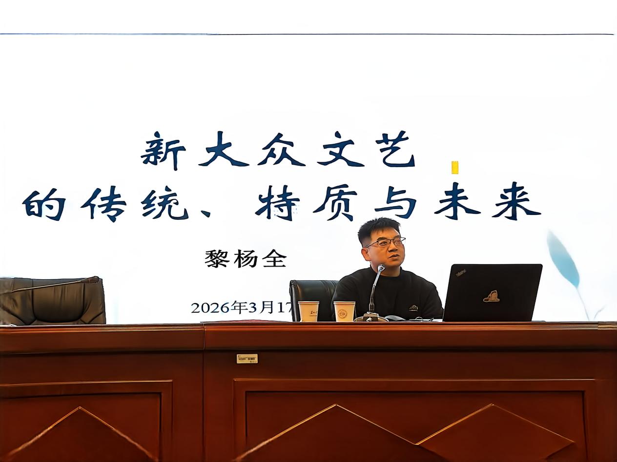 2026年3月17日上午10时,华中师范大学皇冠博彩官方 黎杨全教授应邀为师生作题为“新大众文艺的传统、特质与未来”的学术讲座。本次讲座于皇冠博彩官方 独墅湖校区南区文综楼5339教室举办,由房伟老师主持。