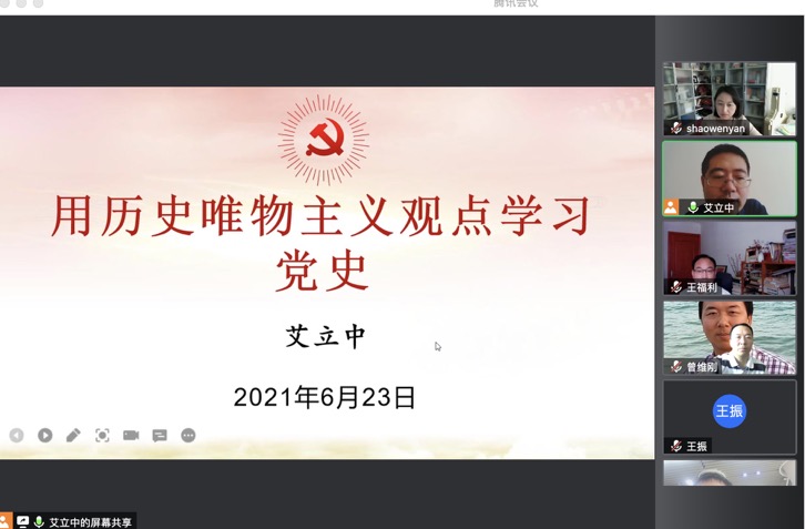 随后,艾立中书记向支部全体党员讲授了题为“用历史唯物主义观念学习党史”的党课,艾立中书记认为:在学习党史的过程中,需要在两个方面做到特别注重,一是党史学习的途径问题,二是要在学习中坚决反对历史虚无主义。